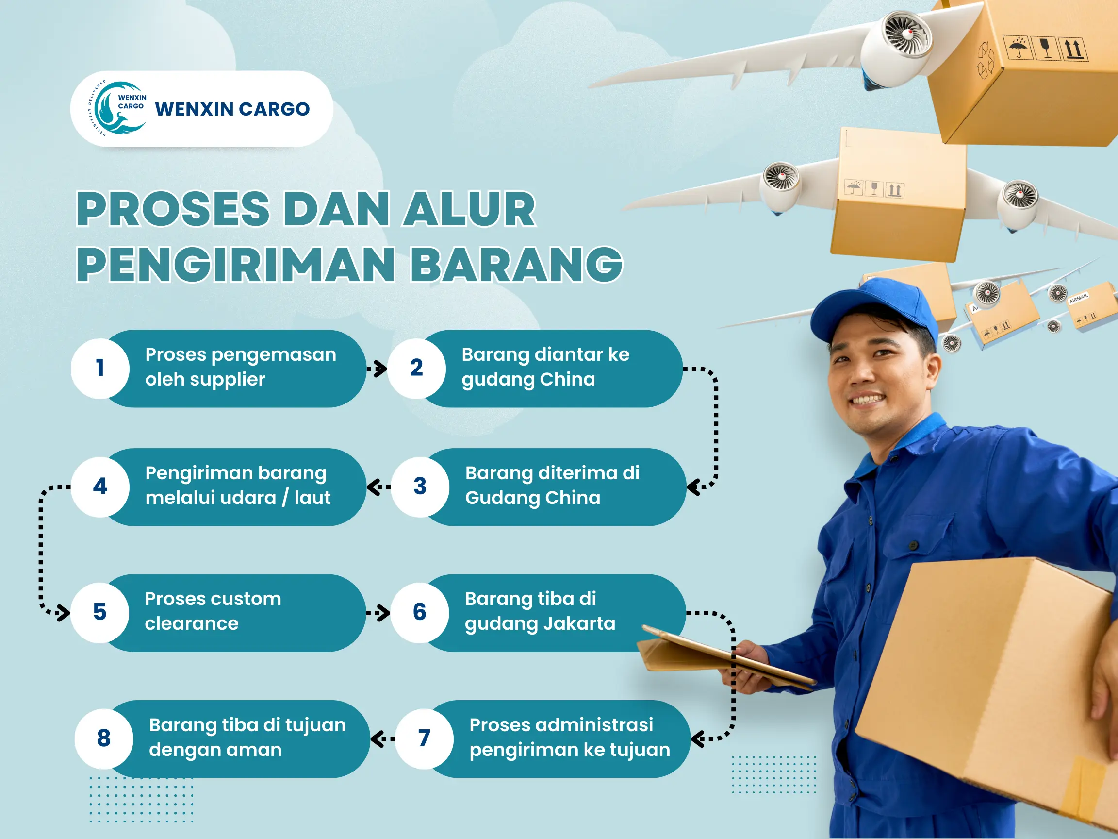 Kami akan membantu semua proses pengiriman barang impor dari China ke Indonesia, terkait izin maupun prosedur pengiriman. Anda dapat mengandalkan jasa import barang dari China untuk menangani beberapa keperluan berikut.